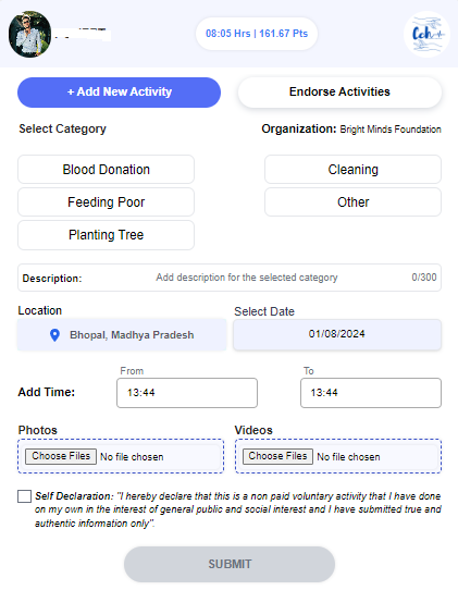 CCH247 app is built to measure and keep a track of no of hours an individual spends on various community service activities